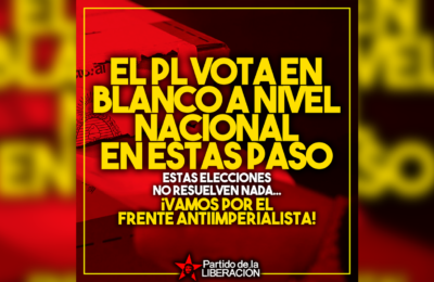 A continuación reproducimos un artículo que nos envían nuestros camaradas del Partido de la Liberación (PL) con motivo de las elecciones P.A.S.O. (primarias,...