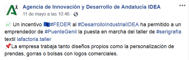 La agencia IDEA hace públicas las ayudas provenientes de fondos europeos FEDER que se dan a negocios de todo tipo, para “innovaciones” que sirven, por ejemplo, en una empresa de dulces, “para optimizar recursos y reducir costes “. Esta es una pequeña muestra de empresarios a los que subvencionamos todos los trabajadores andaluces vía impuestos. O por ejemplo, para subvencionar a una fábrica de guantes de látex, “uno de los productos más demandados en este momento por la crisis del #COVID19”: