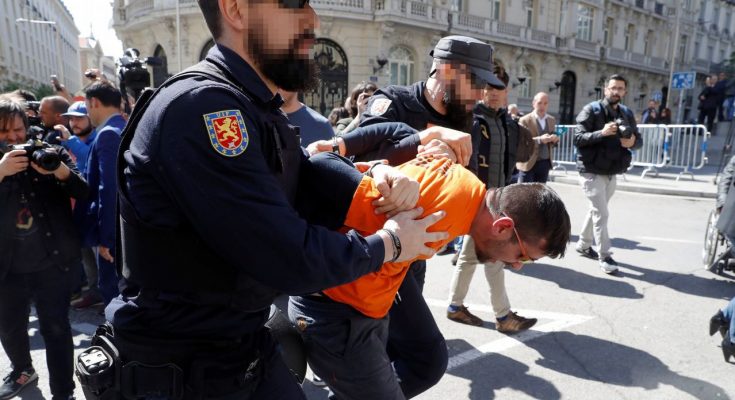 La reacción por parte de las fuerzas policiales no tardó en llegar, agrediendo a los obreros que encabezaban la manifestación y deteniendo a uno de ellos, que fue puesto en libertad tras pasar por la comisaría de Moratalaz.